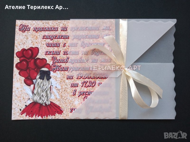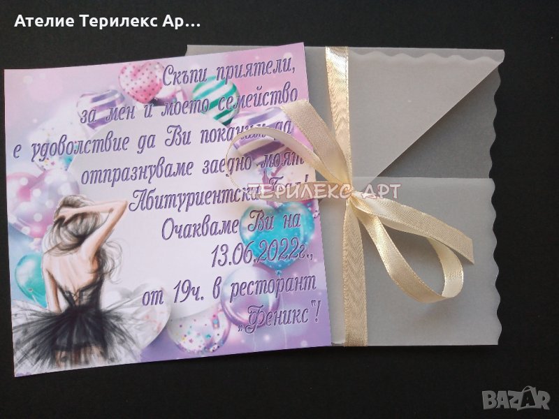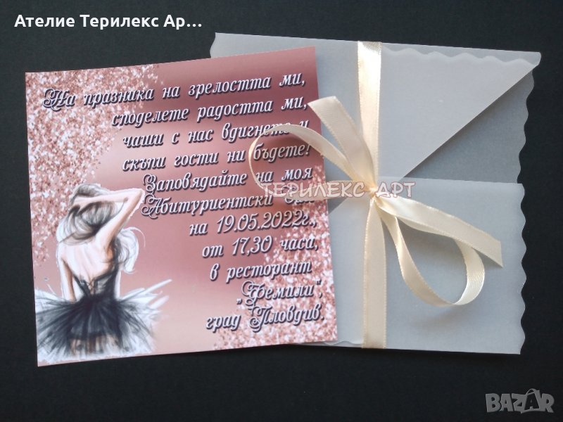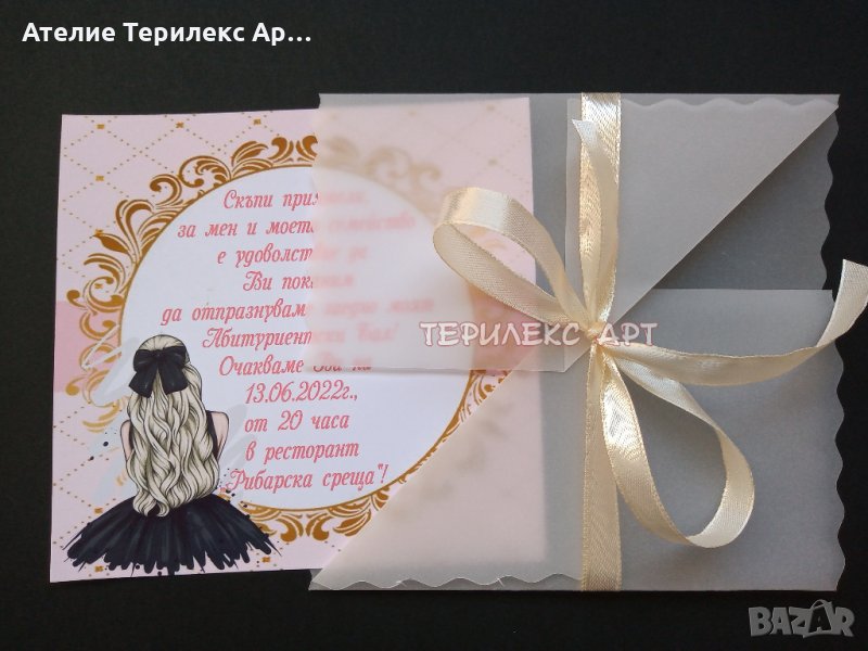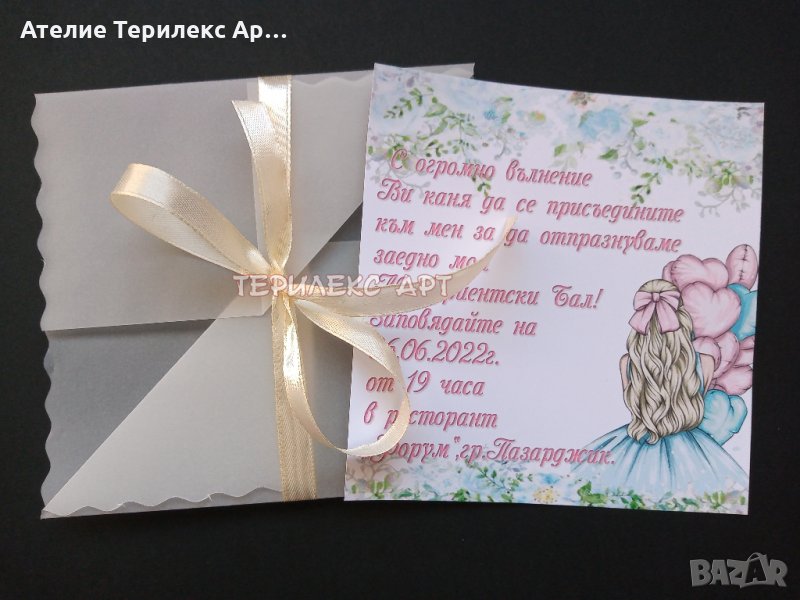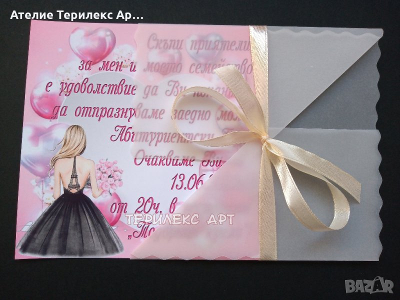 Стилни покани с плик за абитуриентски бал за момиче → Обява 35349536