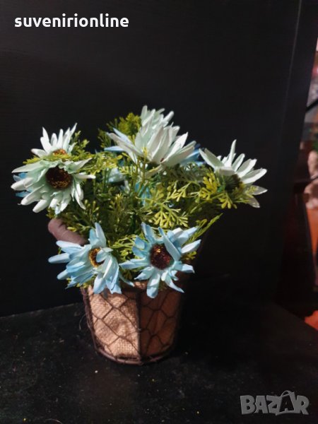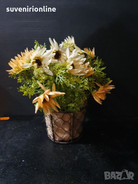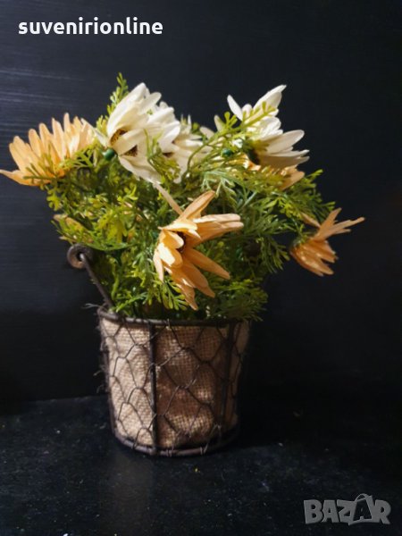 Изкуствени цветя в метална кашпа → Обява 35349563