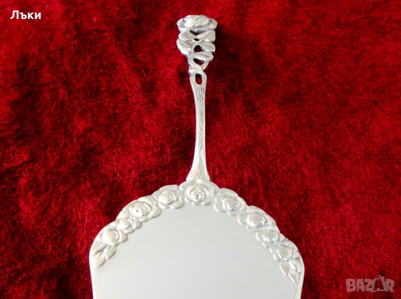 посребрена със 100 микрона висока проба сребро,маркирана Antiko 100.Дизайна на шпатулата е посветен на красотата на английските рози.Дължина 21.5 см.,ширина 5.5 см.,тегло 52 гр.