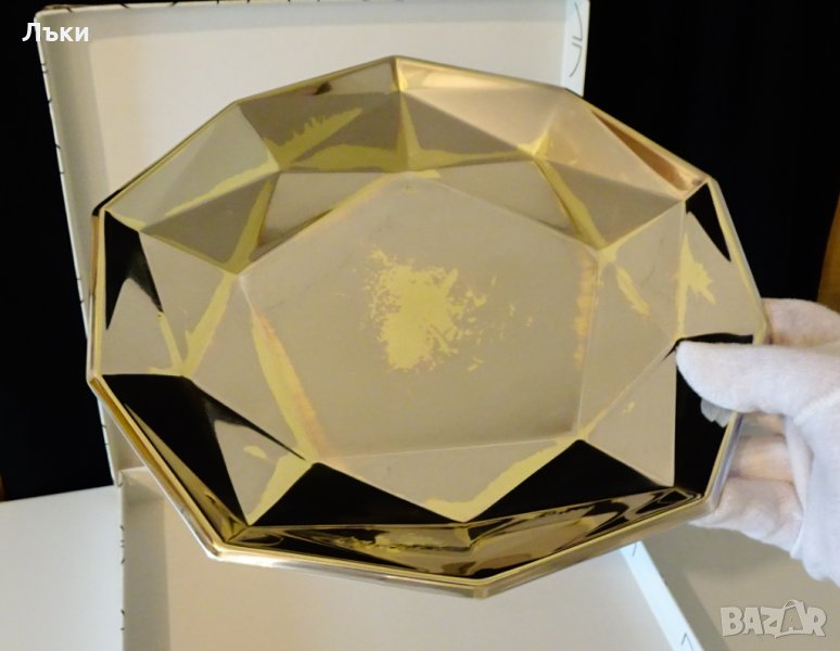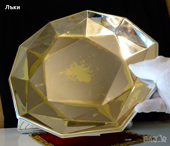 е и оригиналната кутия с цена.Фруктиерата има невероятно ефектен начупен многостенен профил,който имитира шлифовката на диамантите.Много сложна