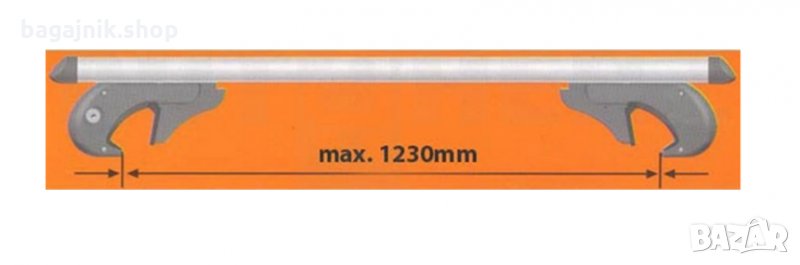 Дължина на пръта: 135 см. За автомобили с релси на покрива с максимално разстояние 123 см.