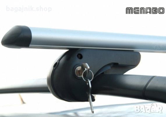 Универсален алуминиев багажник MENABO BRIO XL (напречни греди) със заключване. Подходящ за повечето превозни средства с надлъжни носители.
