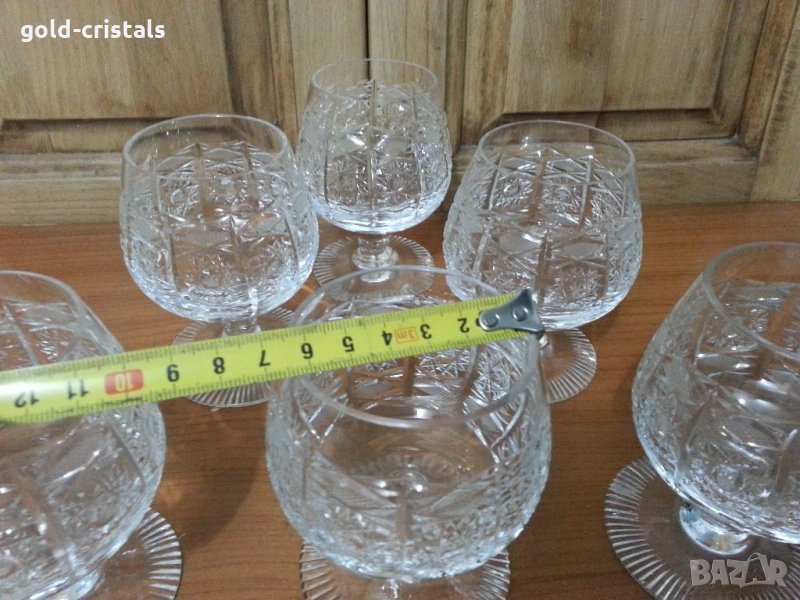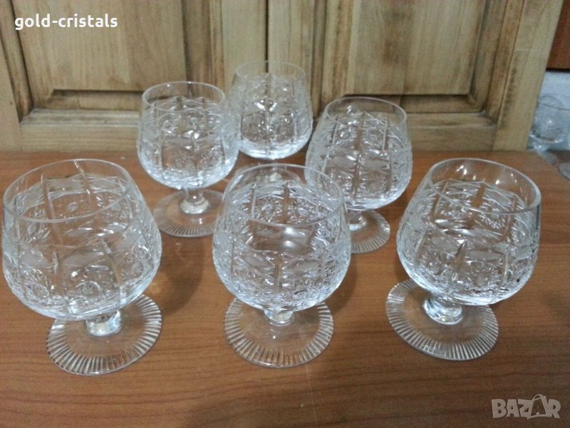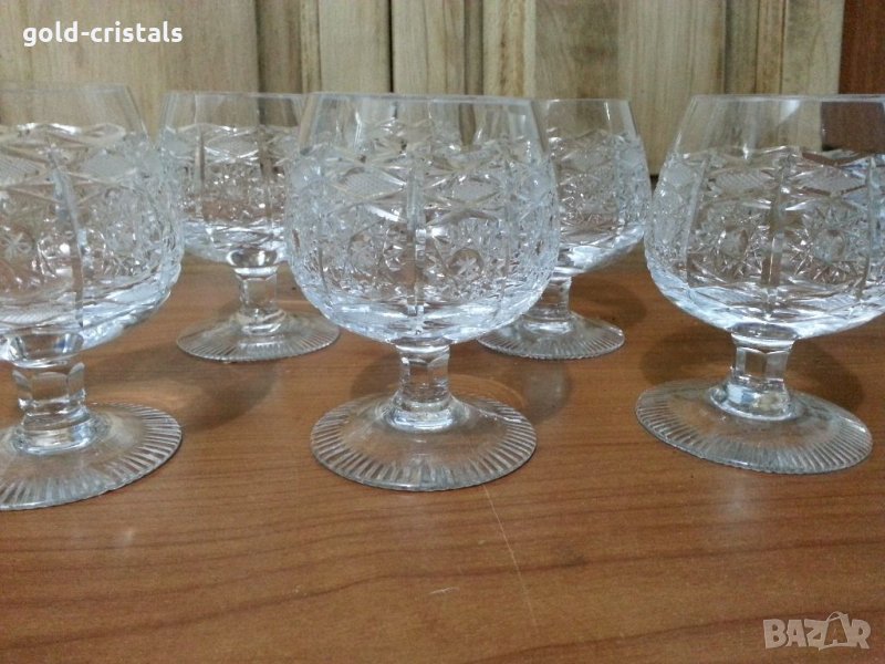 Кристални чаши луксозна серия Бохемия богато гравирани кристал ръчно гравирани 6бр неизползвани сервиз комплект сет лот ретро арт декор винтидж колекция старинни антикварни предмети обзавеждане за дома и семейството за коняк ракия уиски вермут купа за ядки 150лв подходящи за подарък за ценители и колекционери