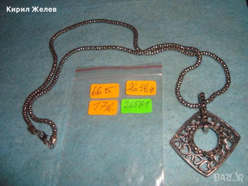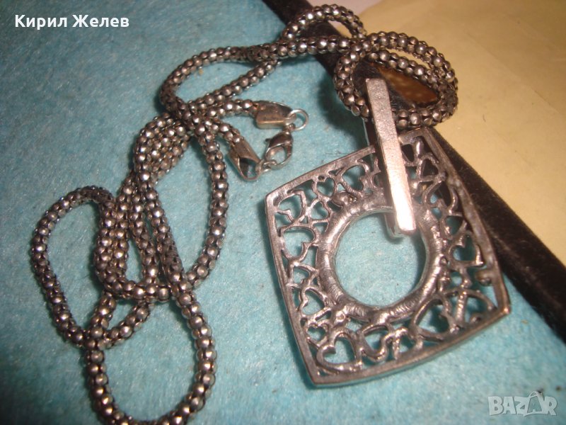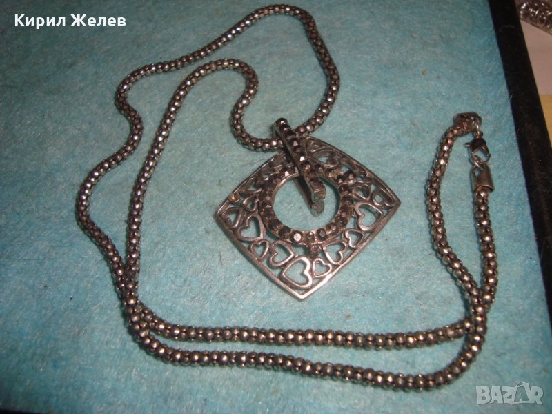 ПОСРЕБРЕН КРАСИВ СЪРЦЕВИДЕН АРТ МЕДАЛЬОН с ИНКРУСТИРАНИ МАРКАЗИТИ и ВИНТИДЖ ВЕРИЖКА 26581