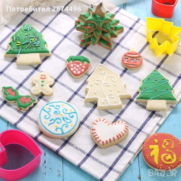 Комплект форми за сладки 5 броя Звезди, Сърца, Кръгове, Елхи или Квадрати