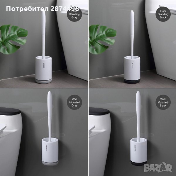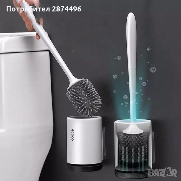 2966 Силиконова четка с поставка за тоалетна чиния - за стена и за под → Обява 35356536