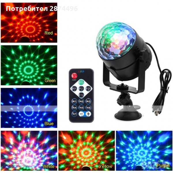 Тази LED парти лампа има 7 цветно осветление и 3 режим с дистанционно.