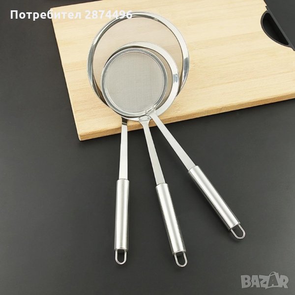 Предлага се в 2 размера (диаметър) на цедката/мрежата: 11,8см и 13,8 см.