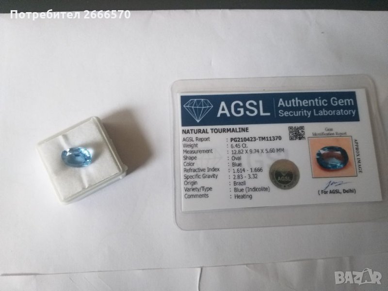 Натурален турмалин със сертификат , рубин диамант сапфир → Обява 35358826