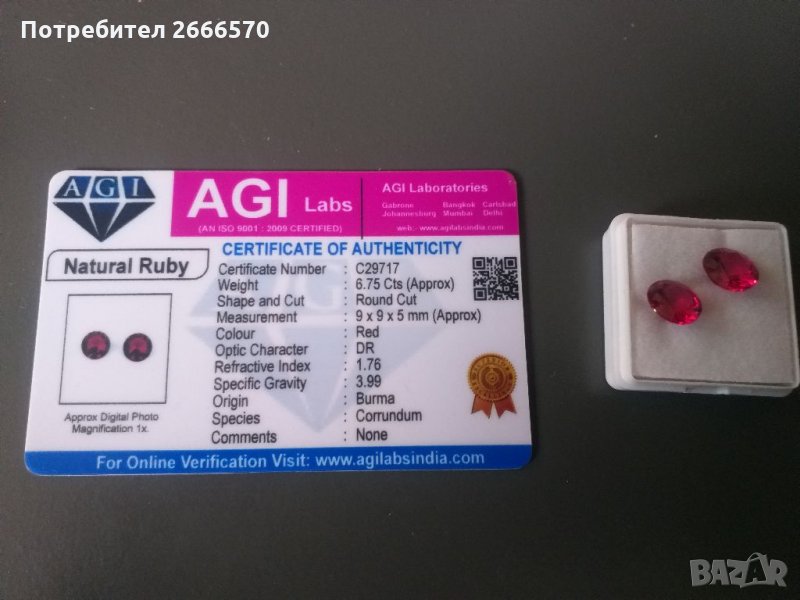 Натурален сертифициран рубин , диамант изомруд сапфир, снимка 1 - Антикварни и старинни предмети - 35359158 Натурален сертифициран рубин , диамант изомруд сапфир, снимка 2 - Антикварни и старинни предмети - 35359158 Натурален сертифициран рубин , диамант изомруд сапфир, снимка 3 - Антикварни и старинни предмети - 35359158 Натурален сертифициран рубин , диамант изомруд сапфир, снимка 4 - Антикварни и старинни предмети - 35359158 1/4