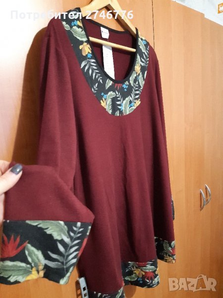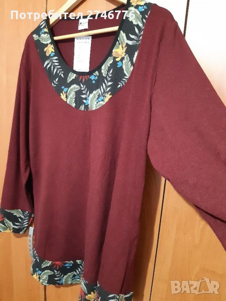 НОВО! Размер 56-3xl Прекрасна туника в Бордо с цветна украса,бг произв. → Обява 35362278