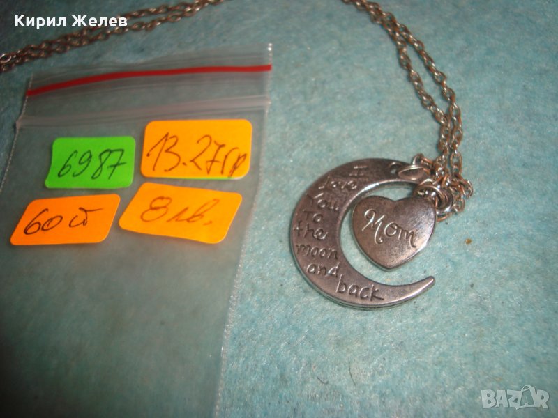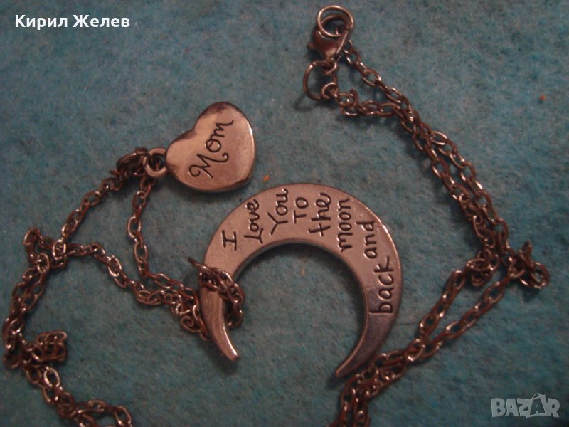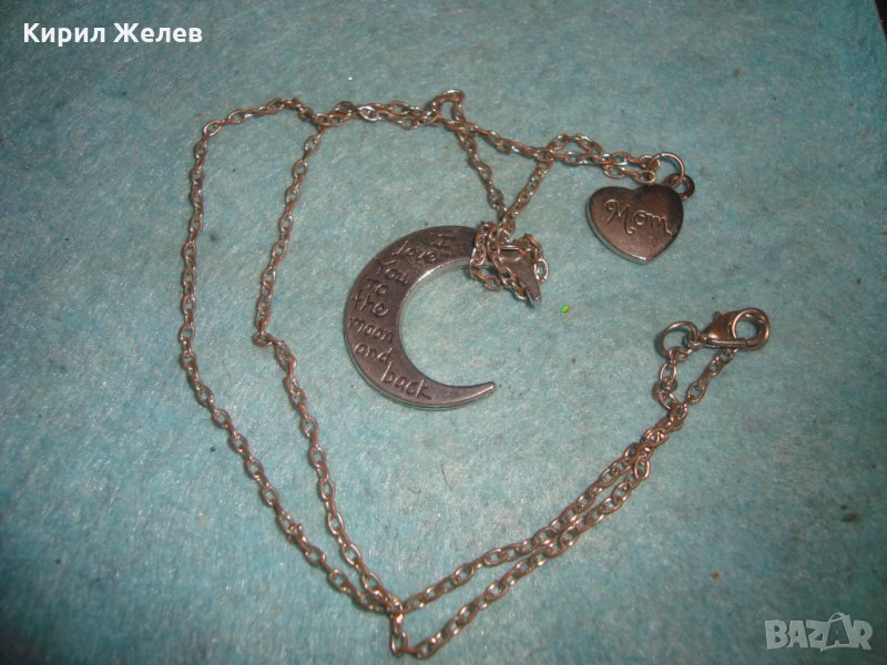 ПОСРЕБРЕН МЕДАЛЬОН СЪРЧИЦЕ ЛУНА ПОЛУМЕСЕЦ с НАДПИС и ВЕРИЖКА 6987