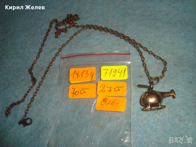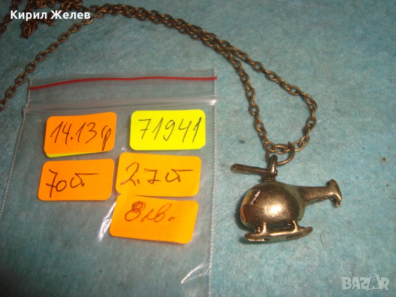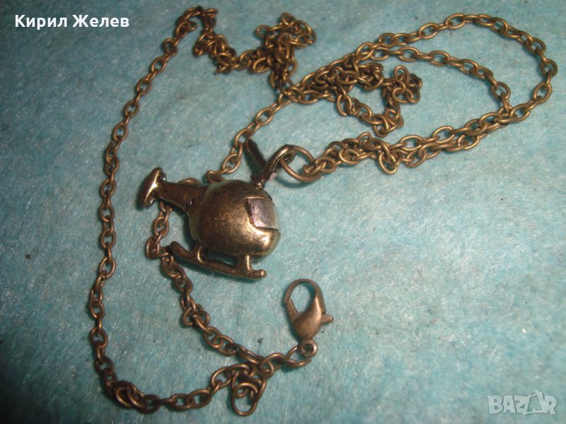 МЕСИНГОВО ХЕЛИКОПТЕРЧЕ АРТ ФИГУРАЛЕН МЕДАЛЬОН с ВЕРИЖКА 71941