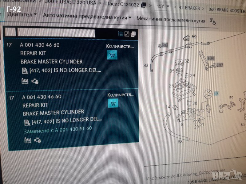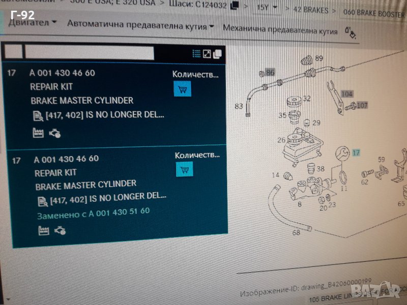 A0014304660**NEU**MERCEDES-BENZ**W201**W124**W129**РЕМОНТЕН К-Т ЗА СПИРАЧНАТА ПОМПА**