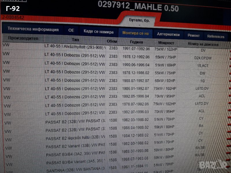9026712**NEU**MAHLE**VW**1.6D/TD-2.4D/TD**БУТУЛО**К-Т**