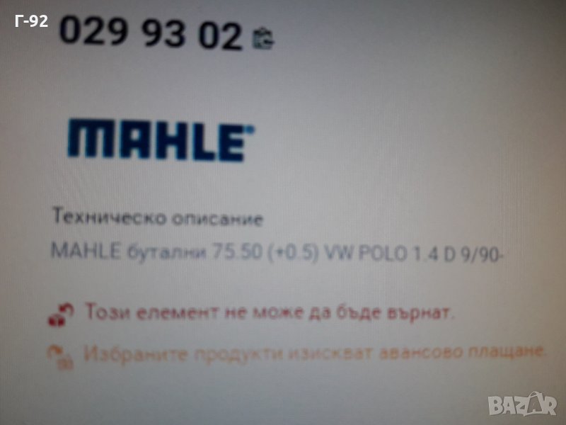 0299302**NEU**MAHLE**VW-1.4D**БУТАЛО**К-Т СЪС СЕГМЕНТИ**