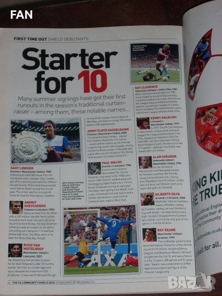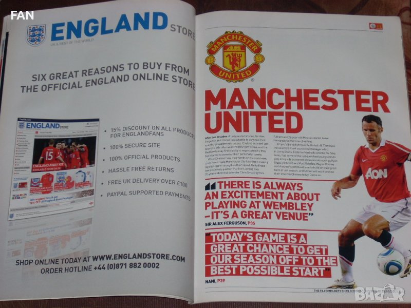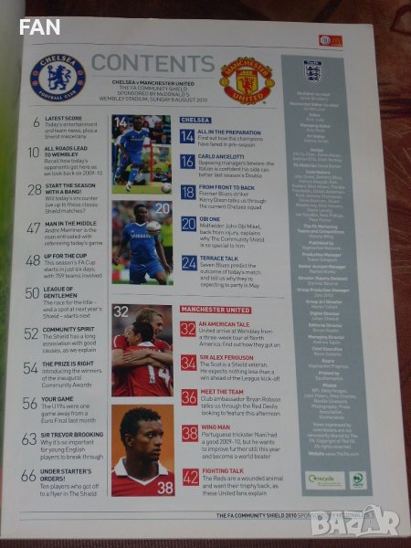 Предлагам официалната програма от мача за Суперкупата на Англия (Къмюнити Шийлд) между Челси и Манчестър Юнайтед, игран на 8 август 2010 г. на стадион Уембли в Лондон пред 84 623 зрители.