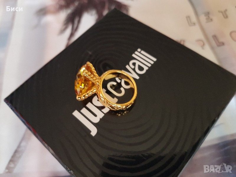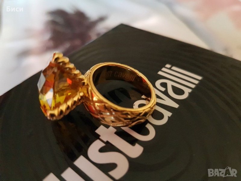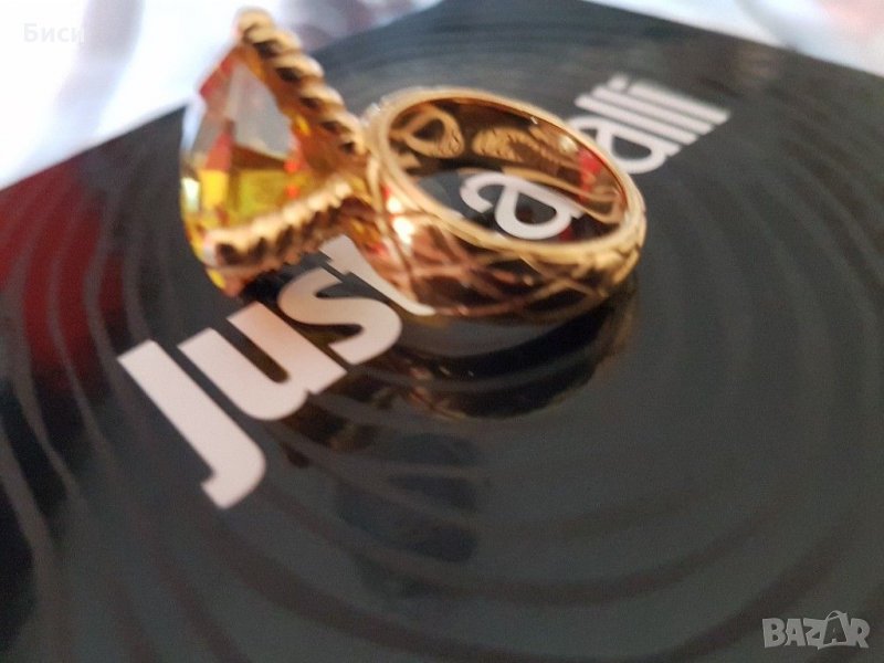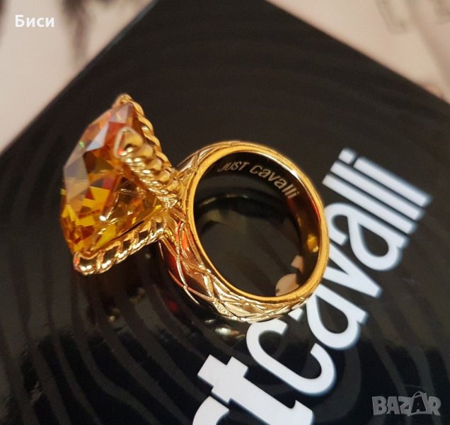 Just Cavalli-оригинален нов,18к.позлатен пръстен със естествен цитрин → Обява 35373774
