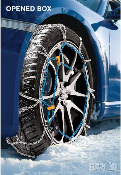 Вериги за сняг, лесни за монтаж и много ефективни. Те са изработени от висококачествена легирана стомана и имат система за самозатягане. Те са одобрени от TUV и GS. Те са изработени от 9 милиметрови верижни връзки и са налични за различни размери на гумите.