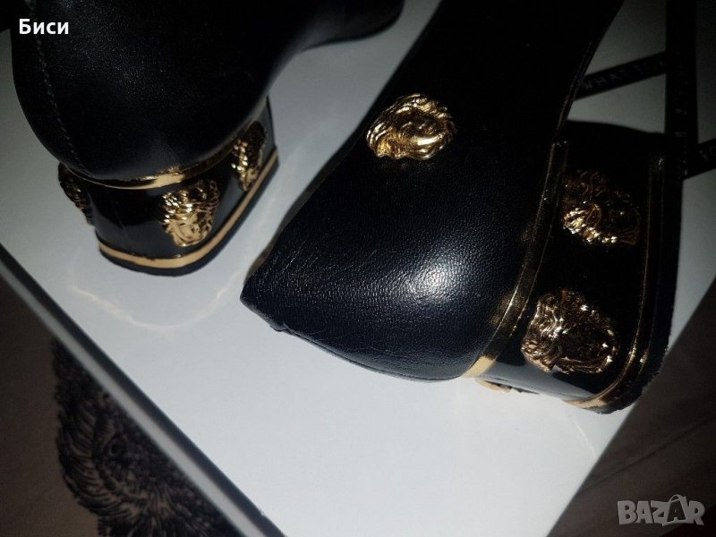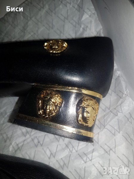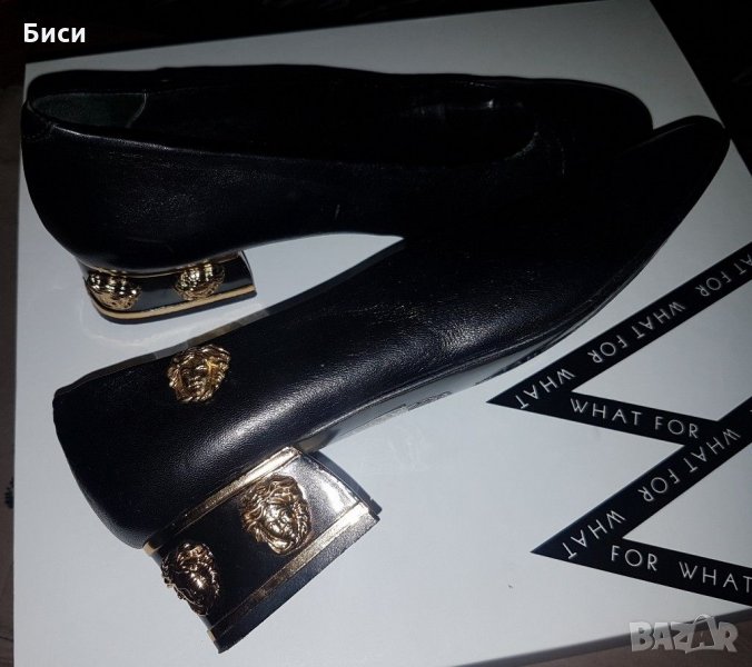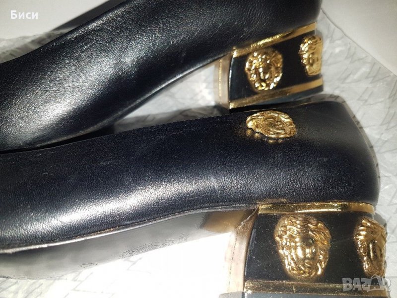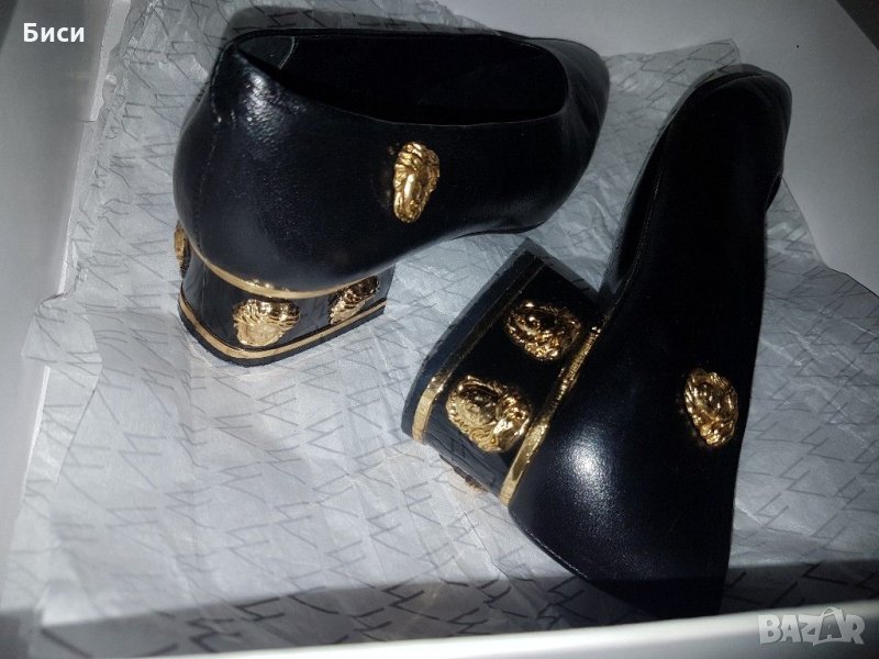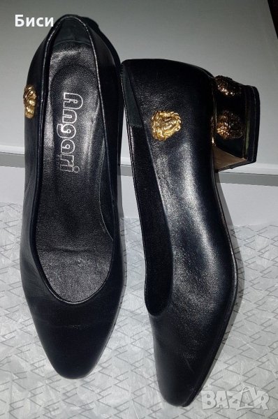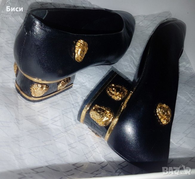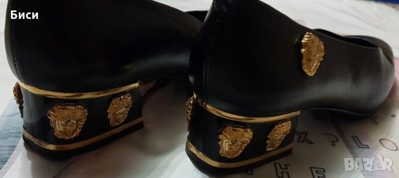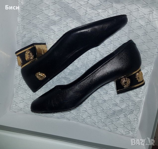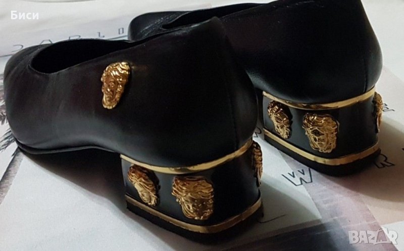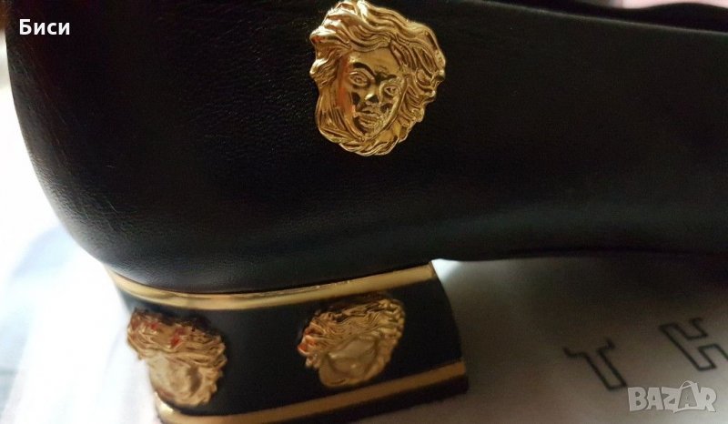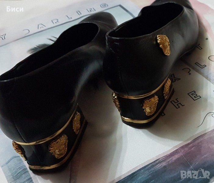 Бутикови италиански обувки от изцяло естествени материали-мека плътна естествена кожа,подметка-естествен гьон, атрактивен невисок и много удобен ток със златисти метални елементи на горгона медуза.