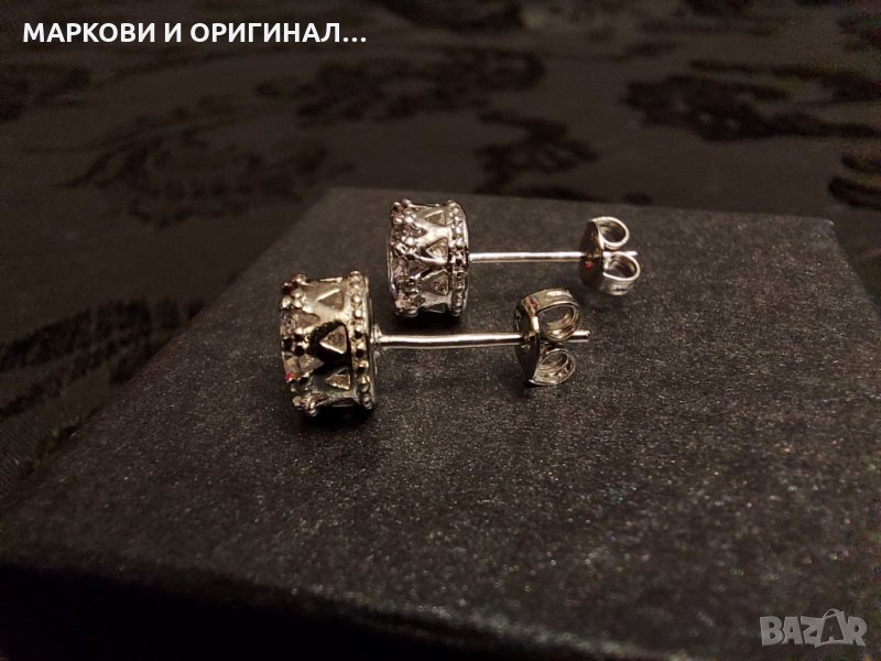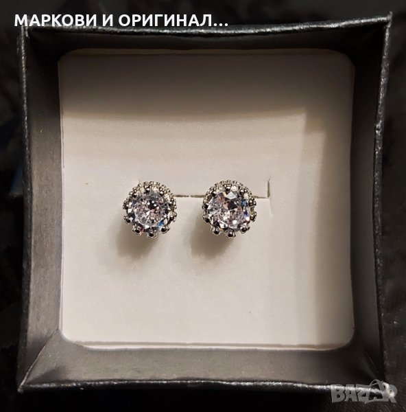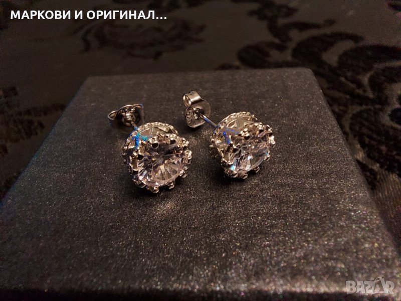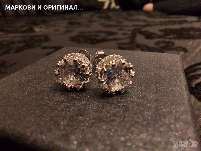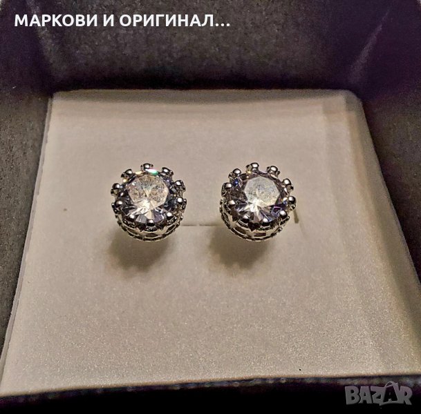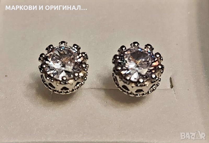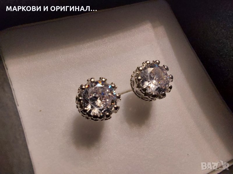 Сребърни обеци, модел"Корона" с цирконий, пр.925 / S925 - 2 гр./ диаметър- 7мм.