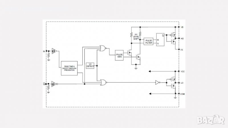IR2104 MOSFET/ IGBT драйвер за мостови и полумостови инвертори Производител: - Infineon Technologies AG (International Rectifier) Summary of Features: Floating channel designed for bootstrap operationFully operational to +600 VTolerant to negative transient voltagedV/dt immuneGate drive supply range from 10 to 20 VUndervoltage lockout3.3 V, 5 V, and 15 V logic input compatibleCross-conduction prevention logicMatched propagation delay for both channelsInternal set deadtimeHigh side output in phase with HIN inputShut down input turns off both channelsMatched propagation delay for both channels......................................................................... Applications: • IGBT/MOSFET gate drive • Brushless DC motor drives • Industrial inverters • Switch mode power supplies Цени за количества от: 1-9 броя - 4.50 лв на брой 10+ броя - 4.00 лв на брой Наличност: >20 броя на склад в София Коментар: На схемите са дадени "тежки" MOSFET транзистори (с голям гейтов капацитет) Това е така защото работната честота е ниска. При по-високи честоти е необходимо да се използват допълнителни елементи в управляващите вериги за по-бързо разреждане на гейтовите капацитети. Лично на мен най-много ми харесва възможността да се направи мощен полумостов генератор на правоъгълни импулси за напрежения от 12 до 310 волта, който да може да се управлява от външен функционален генератор. Така ще може да се генерират мощни правоъгълни импулси с регулируеми честота и коефицент на запълване. Има пин shut-down, на който може да се изгради защита. За София може лично предаване, а за страната изпращам по Еконт и Спиди от офис до офис за минимизиране на транспортните разходи.