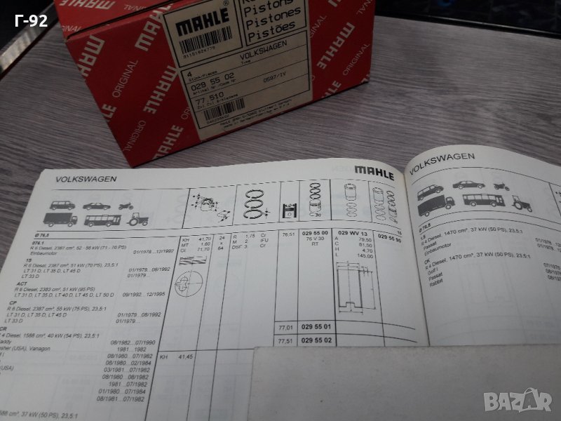 0295502*NEU**MAHLE **VW**1.6D-2.4D*БУТАЛО**КОМПЛЕКТ СЪС СЕГМЕНТИ** 76,51 (+1,00),
