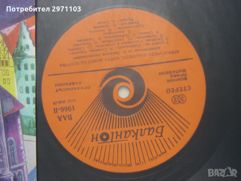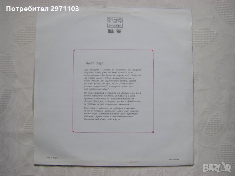 Грамофонна плоча - ВАА 1966 - Дребосъчето и Карлсон който живее на покрива (Астрид Линдгрен)