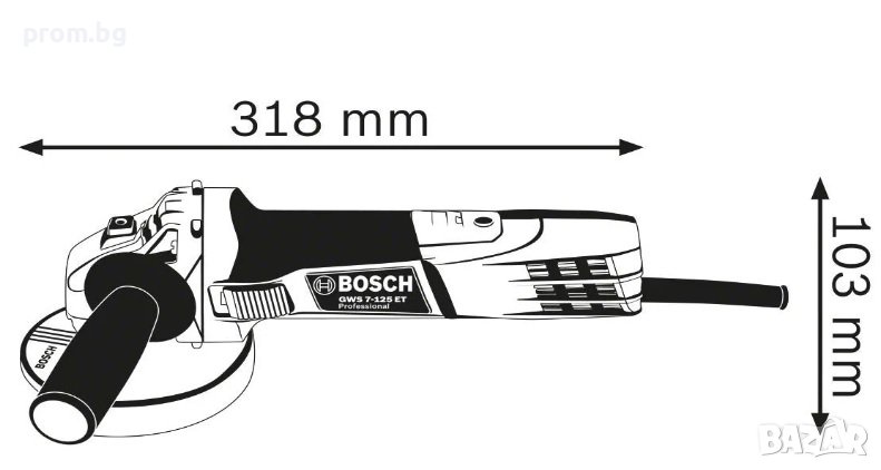 ъглошлайф Bosch GWS 7-125, СИН ЦВЯТ,внос от Германия. Технически данни: 720 W, 220 V, 11000 Nm об./мин. Диаметър на диска: 125 mm; Размери на артикула Д x Ш x В: 36,2 x 13,1 x 12,3 см. Дължина на кабела: 2,5 метра; Изключително тънък (обиколка 176 мм) в сравнение с други ъглошлайфи в своя мощностен клас. Това го прави особено удобен за работа; 720 W мощност на мотора при тегло само 1.9 кг; Плоска глава на редуктора за удобна работа и в тесни места; Специално разработени вентилационни отвори за оптимално охлаждане на мотора при продължителна работа; Кожух със защита срещу завъртане.