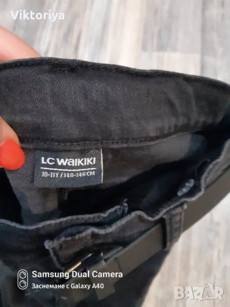 Блузата е 128-134 на LC Waikiki . Обличана само веднъж, съвсем нова е.Дънките са на същата марка (140-146), с коланче са, изобщо не са обличани.
