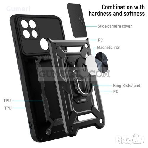 Realme C21 - Противоударен Хибриден Кейс със Защита за Камерата - Черен