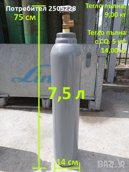 Стоманена бутилка 7,5л. (а не 6,7 литра)/5,0кг. - Цена: 86,92 € / 170 лв.