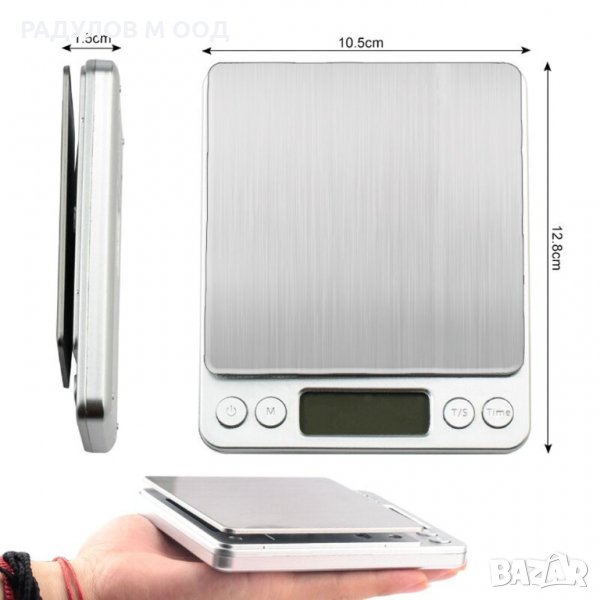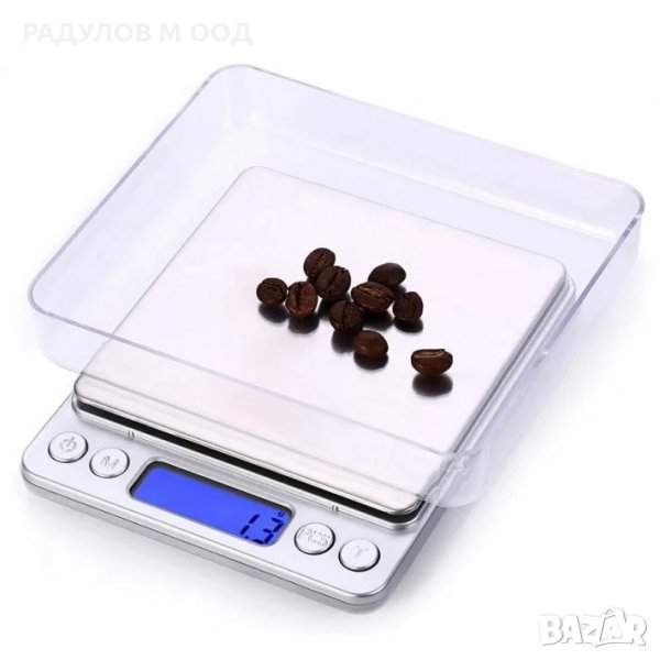 Удобна електронна везна с висока точност на претегляне (500g / 0.01g), LCD дисплей с подсветка и платформа 100x100 mm.