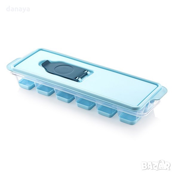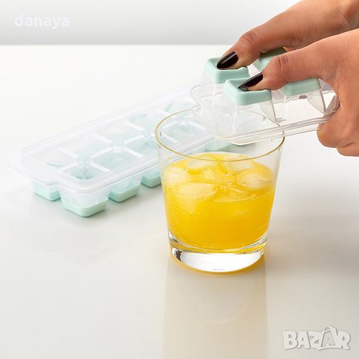 Пластмасова форма за лед с капаче и отвор за лесно пълнене. Тези практични и удобни формички за лед се състоят от две части – основа със силиконово дъно за лесно изваждане на кубчетата лед и гъвкав капак. Благодарение на капака, течността във формичките не се разлива, капакът предпазва ледените кубчета и от замърсяване. Изключително лесно пълнене, всеки капак си има клапа, през която с лекота може да напълните основата.