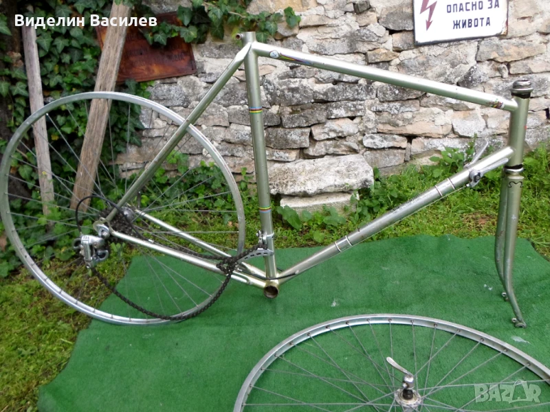Налични са само рамката със скорости и каплите. Цена рамка/скорости Шимано и верига Седис /140 лв, капли/Шимано ,Вейнман ,Атом/100 лв. Рамка /?Белгия или Франция по стила на изработката,без муфи/60 ст, 57 сс хоризонтал, леки повърхностни ръжди от лошо съхраняване.,Weinmann спирачки//Продадени//,3TTT кормило с лапа//Продадени//, капли Weinmann,Shimano//Без гуми//..BSA средно движение ,седалково колче ще намеря/добавя/.