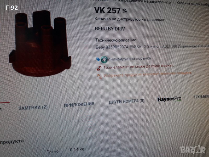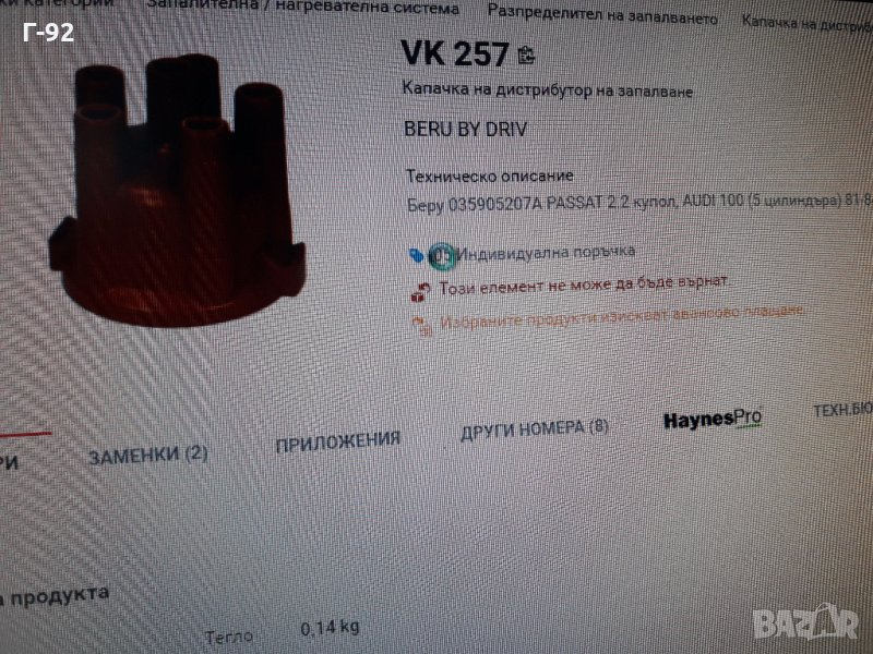 VK257**NEU**BERU**AUDI**ДИСТРИБУТОРНА КАПАЧКА