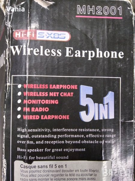 Продавам безжични слушалки MH2001, употребявани, в добро общо състояние. Параметрите може да видите в снимките, описанието е свалено от Интернет