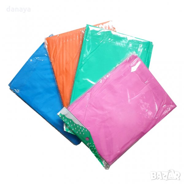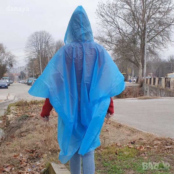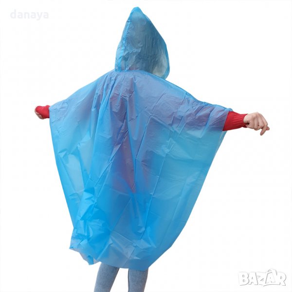 Универсален размер дъждобран, подходящ за мъже и жени. Дъждобранът е тип пончо със свободни ръкави. Изработен от винилов материал.