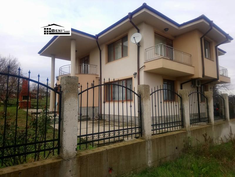 Луксозна къща на два етажа с обща площ от 240 кв.м. Дворно място от 881 кв.м. Напълно обзаведена и оборудвана, с акт 16. Югоизточно изложение. Камина, гараж с автоматична врата 40кв.м., централно отопление от комбиниран