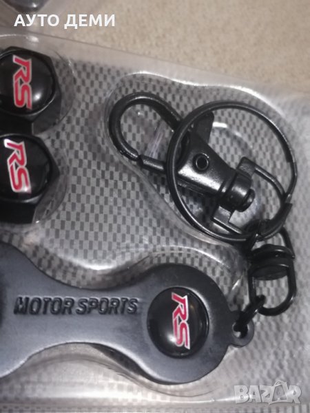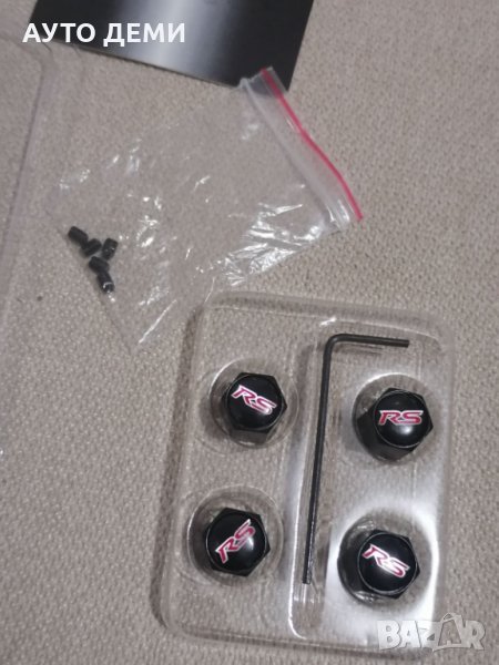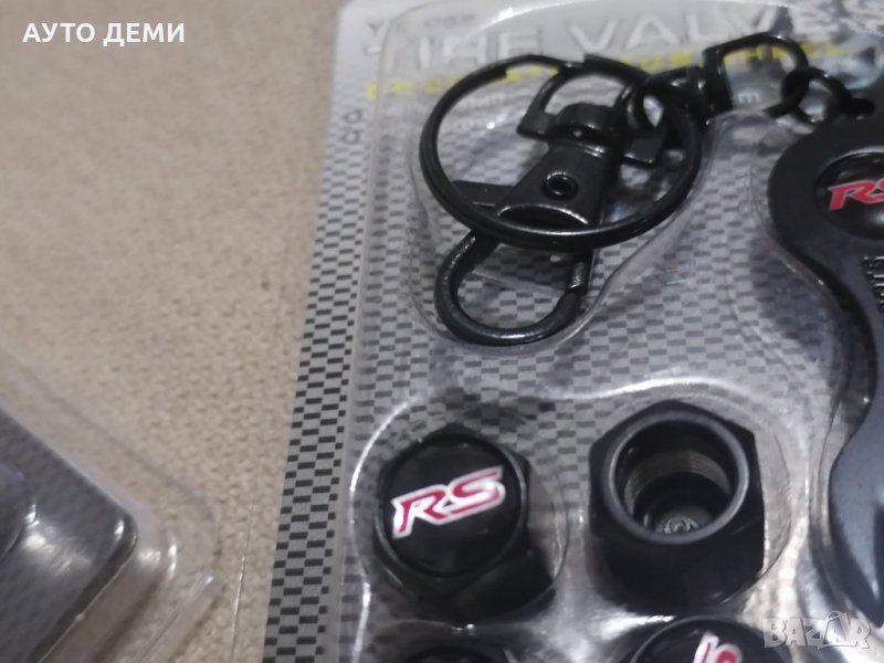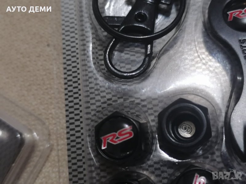 1. Първи модел черни метални капачките за вентили с шестограмна форма ,гумени уплътнители и червени емблеми RS с черен ключодържател с форма на ключ и емблема в оригинална опаковка - 14.80 лв за 1 комплект .