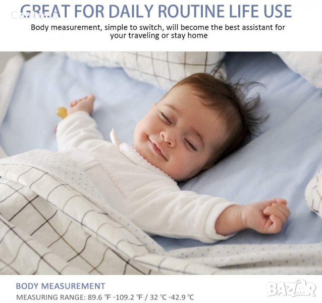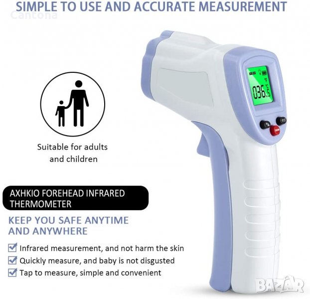 - Безконтактен цифров LCD инфрачервен термометър, дисплей по-ясен, по-безопасен и по-удобен. В сравнение с живачния термометър, няма опасност от счупване на стъклото или поглъщане на живак.