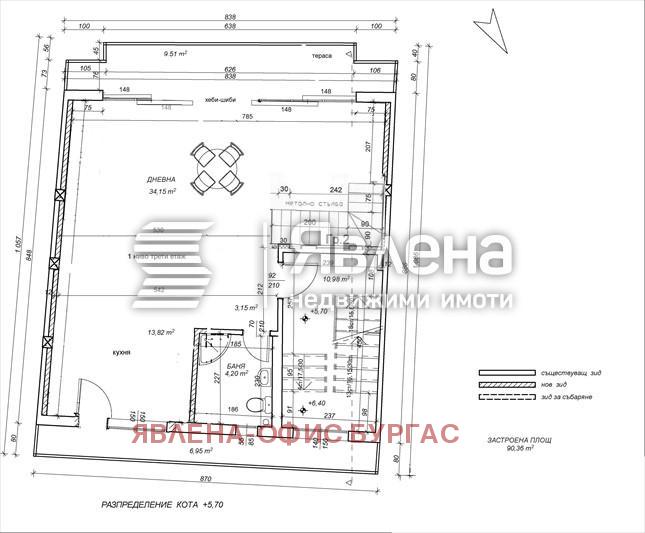 - 1 етаж ЗП 76 кв.м.: кухня-трапезария, всекидневна спалня, WC;-