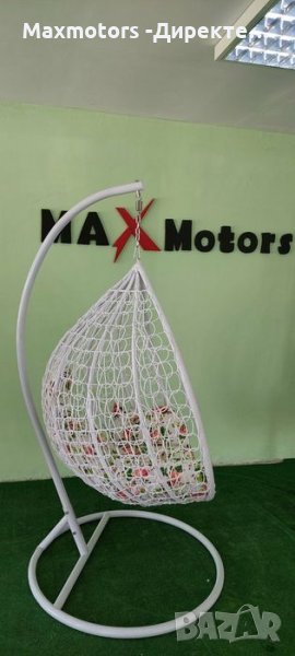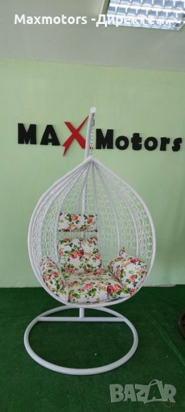Люлка метална,Ратанова оплетка в бяло. Възглавници на цветя. Тип яйце 150 лв