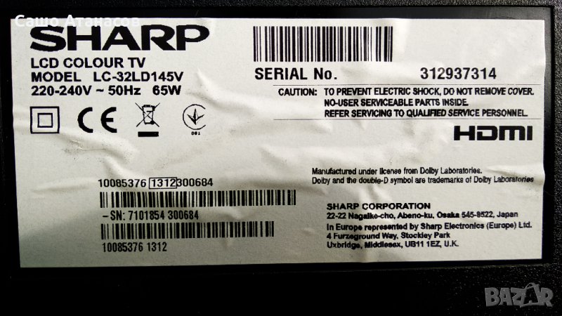 SHARP LC-32LD145V с дефектна матрица ,17MB82-2 ,17IPS19-5 ,6870C-0442B ,VES315WNDL-01 → Обява 35407425