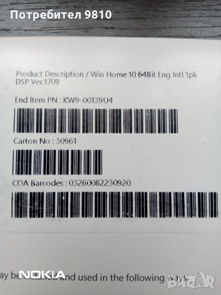Продавам OS Windows 10 Home 64 bit kw 9-00139 → Обява 35407555