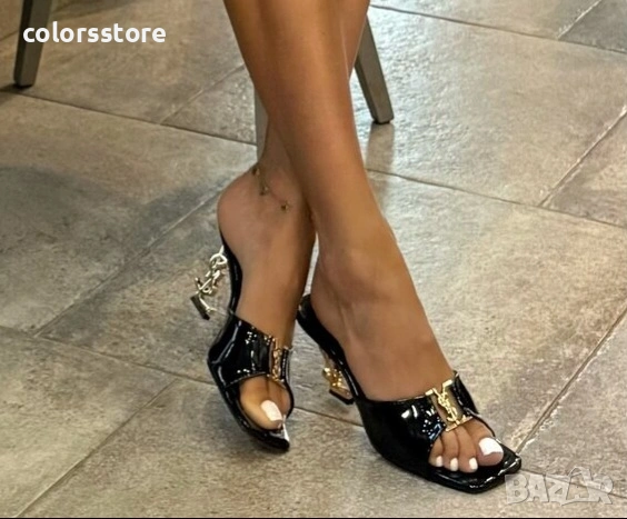 Чехли на ток - черен лак със златист ток - SYL35 , снимка 1 - Чехли - 35409354 1/1