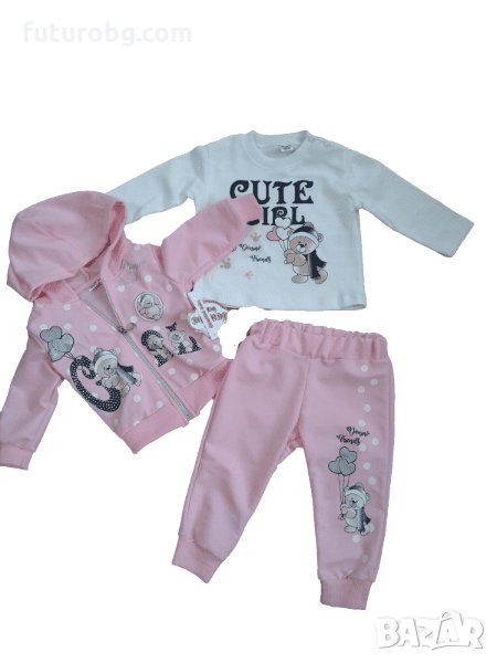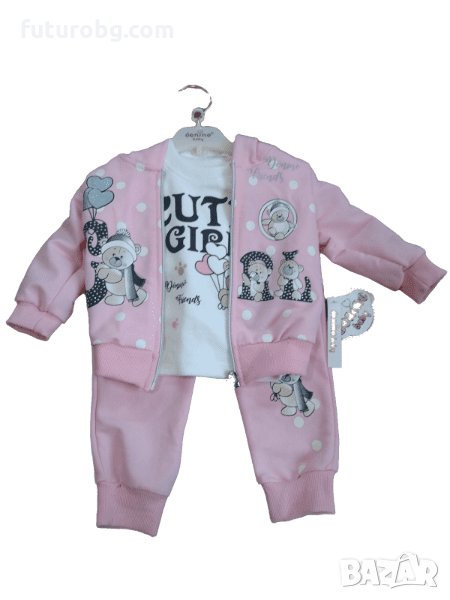 Комплект от 3 части за бебе момиче в розово и бяло