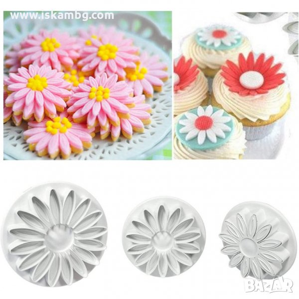 Сладкарски инструменти за изрязване на Големи цветя от фондан - три размера Маргаритки