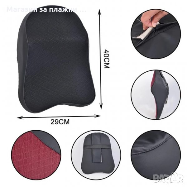 Възглавниците се предлагат по отделно за врата и за гърба, за по- голямо удобство може да си вземете и двете. Изработени са от висококачествена мемори пяна, дишащата материя предотвратява запарването и изпотяването. Калъфката на възглавничката се сваля и се пере.