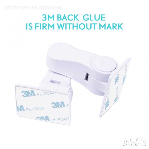 Устройството за заключване на шкаф, врата или прозорец е с бърз монтаж чрез 3М самозалепваща лепенка, която не оставя след от лепило при демонтаж. Заключващото устройство предпазва малкия изследовател от достъп до опасни уреди и материали или прескачане през прозореца. Лесно се закрепва със самозалепващи лепенки и се сваля, когато ключалката вече не е необходима.